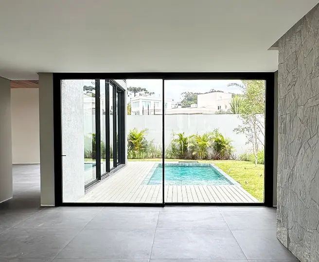 Projetado para residências e espaços premium, o SF76 oferece flexibilidade para projetos exigentes, com grandes vãos de abertura e acabamento minimalista impecável.